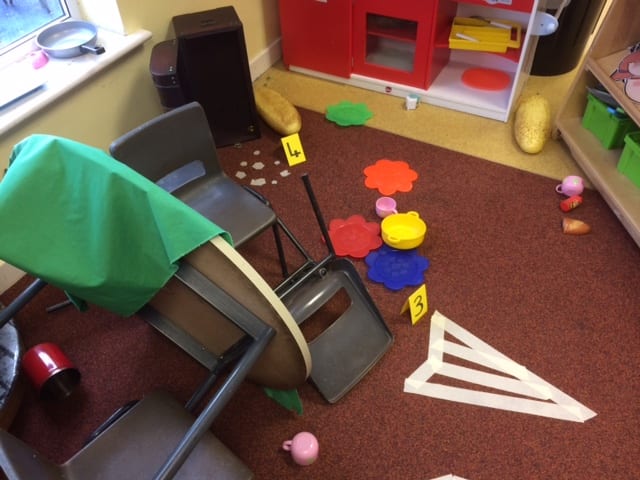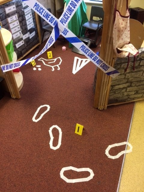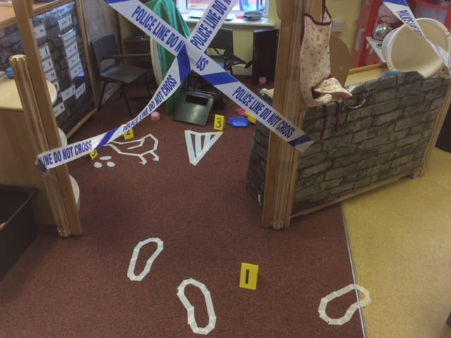 There was a mysterious break-in at school! Someone had broken into our reception class and made a terrible mess! The police were called and the crime scene was made secure. Who did this terrible act? Our Reception children were determined to find out and they made sure all suspects were questioned and finger printed. Even the headteacher, Mr Duncan, couldn’t escape being interrogated. Finally the culprit was identified and it was no other than …….the big bad GIANT!