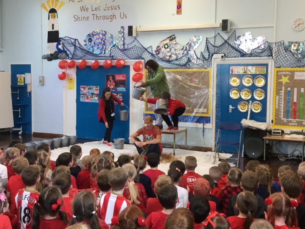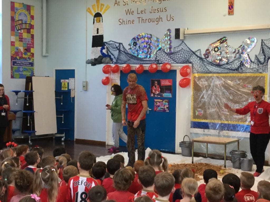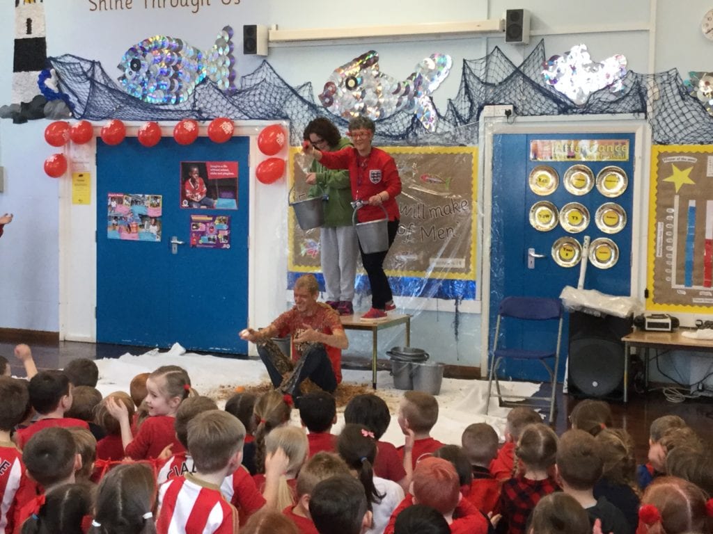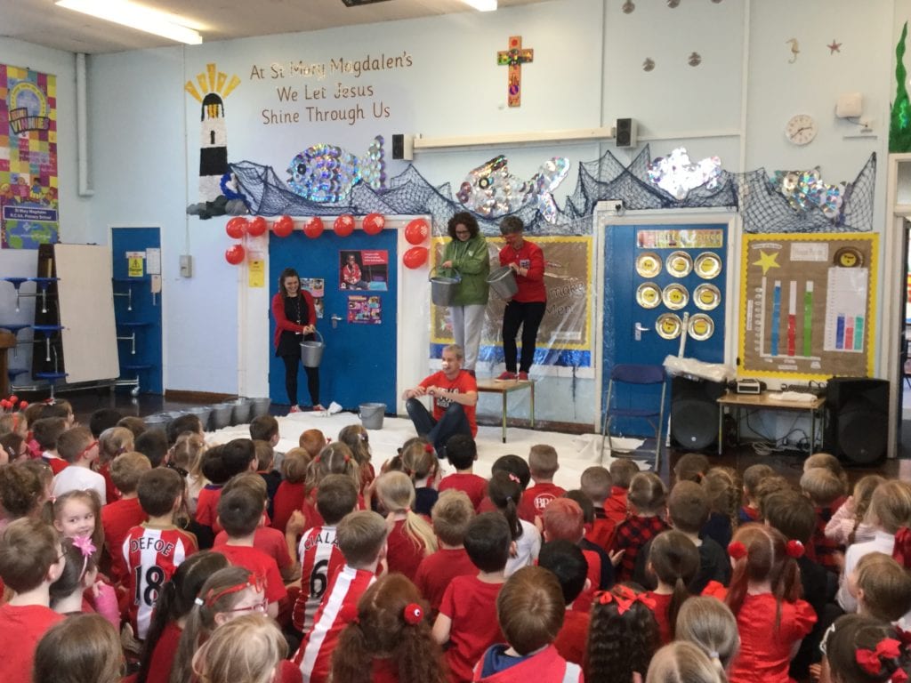 The school had a fun filled day to celebrate Red Nose Day 2017. Lots of fundraising events took place throughout the day. Our ‘Mini Vinnies’ held a ‘Tell us your joke’ competition, the school council washed the staff cars to raise money and a surprisingly large number of pupils and staff donated money to see poor Mr Duncan get dunked at the end of the day!! A fantastic £459.23 was raised for good causes – well done everyone!