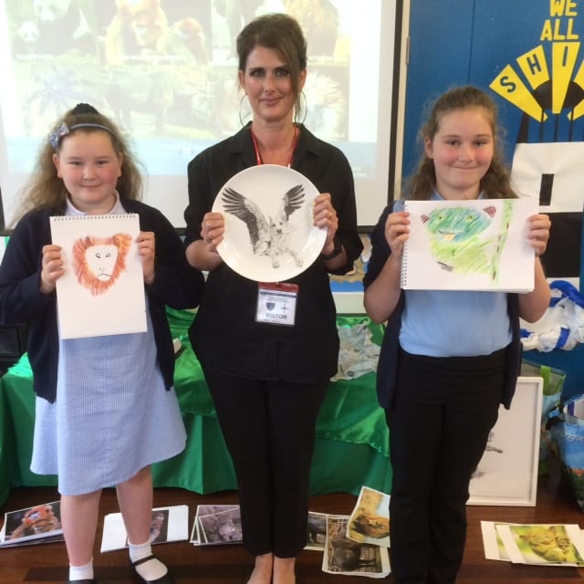 Our school had a visit from a real life artist today who worked with the children exploring different forms of art. Jane McCraken is a professional artist who has produced many exciting and commercial art pieces. Having given an assembly to the children, Jane then went on to work with classes to produce their own works of art! All the children had a fabulous day and certainly learnt lots of new artistic skills.