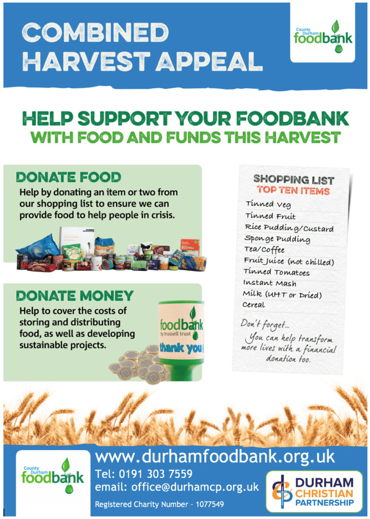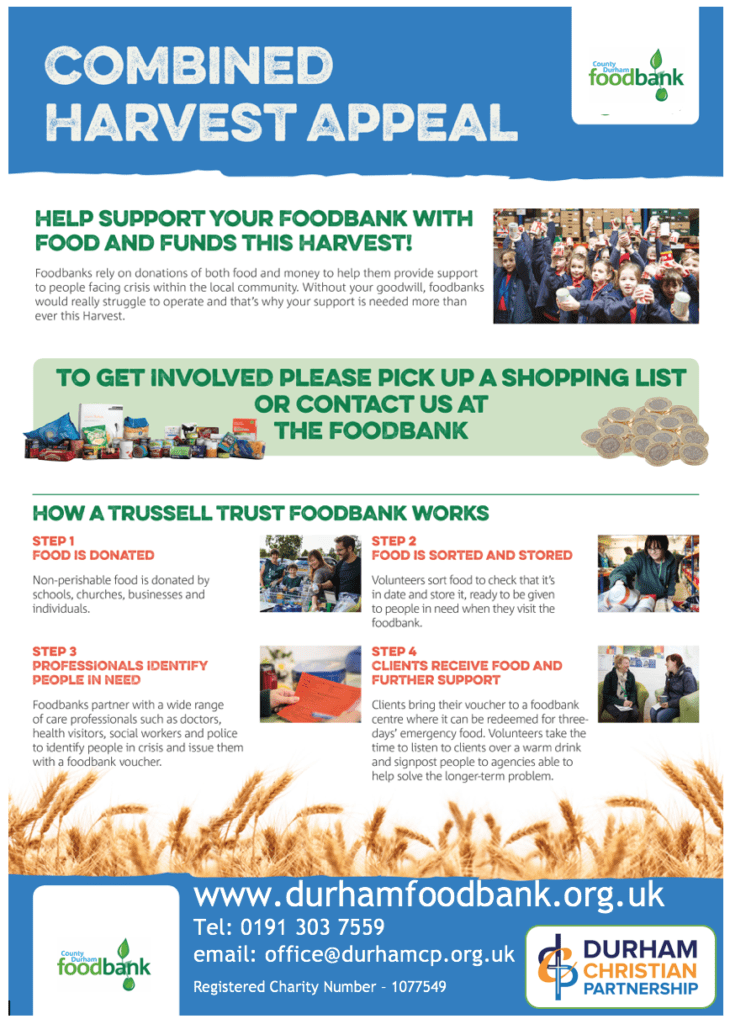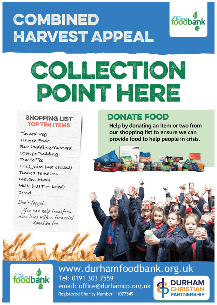 In order to support our local food banks we will be collecting food cans on the day to donate to County Durham food bank. Any donations would be greatly appreciated.
