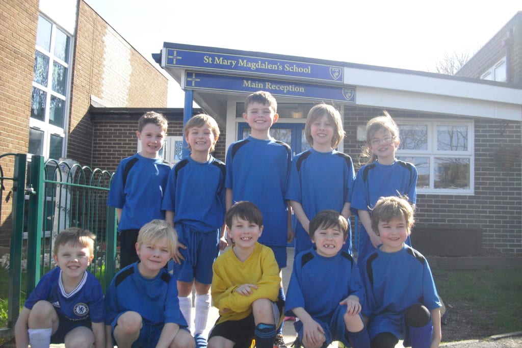 Both our A and B football teams were showing off their new football strips and getting ready for their big matches in the ‘Bishops Cup’. A BIG thank you to our ‘Friends of St. Mary Magdalen’s’ who generously bought these fantastic new strips! I’m sure both teams will achieve great things and will add further successes to the many trophies, shields and medals we already have displayed in school.